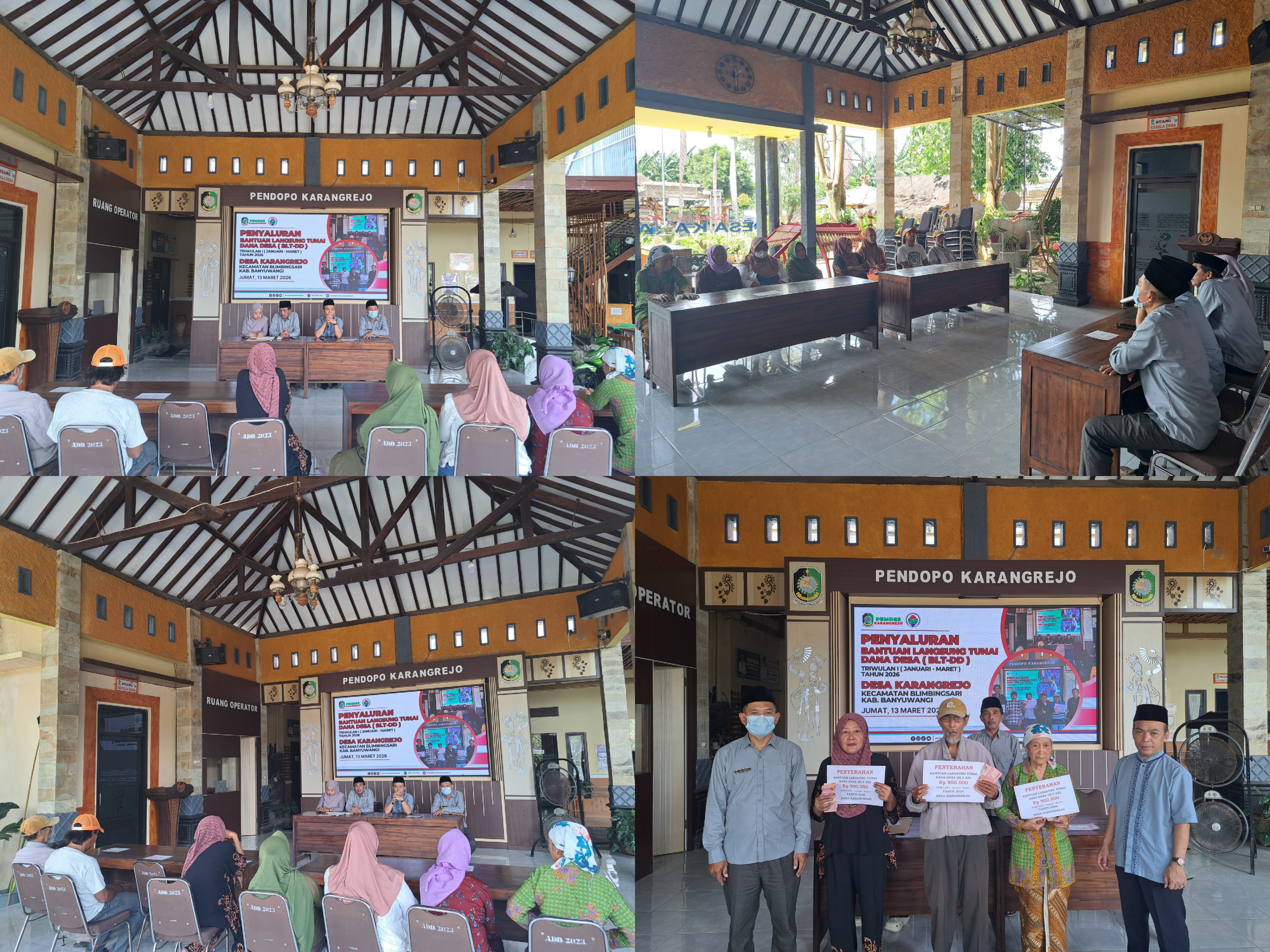 KARANGREJO - Pemerintah Desa Karangrejo menyerahkan Bantuan Langsung Tunai Dana Desa (BLT-DD) Triwulan I (Januari-Maret) pada hari Jumat tanggal 13 Maret tahun 2026 kepada 10 warga kurang mampu yang telah terdaftar sebagai Keluarga Penerima Manfaat (KPM).