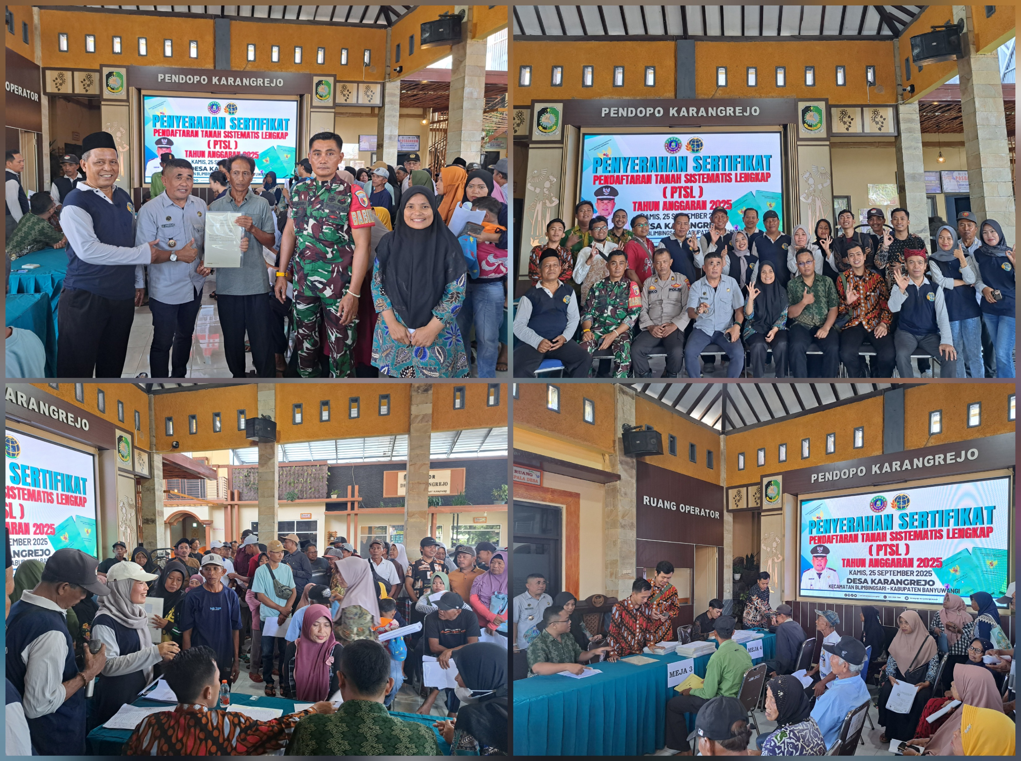 KARANGREJO – Pada hari Kamis, 25 September 2025, bertempat di Pendopo Desa Karangrejo, telah dilaksanakan kegiatan Penyerahan Sertifikat Hak Atas Tanah Program Pendaftaran Tanah Sistematis Lengkap (PTSL) Tahun Anggaran 2025.